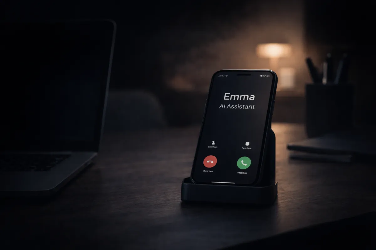 A short excerpt from an actual call handled by Emma while the agent was unavailable.